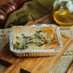 Espinafre com Ricota: Experimente a harmonia entre a suavidade da ricota e a vitalidade do espinafre, cuidadosamente combinados em uma torta integral. Cada porção é uma celebração de sabores e nutrientes, proporcionando uma experiência gastronômica única. 246Kcal